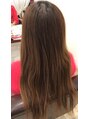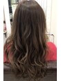 退色した髪に、秋冬のトレンドの1つアッシュベージュで栗色みたいな柔らかい色でツヤ感をプラス。毛先も薄くなっていたので厚みを出して手触りを良くしました。アレンジで巻いて外国人風スタイルに仕上げました。