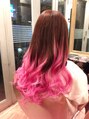 ミディアムの地毛は伸ばしていきたいので、ダメージを出さないようにブリーチ無しのカラーを施し、ピンクブラウンに♪( ´▽`)ビビットピンクにカラーしたエクステを60本つける事で、地毛はダメージレスのグラデーション風派手髪に(*^o^*)