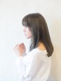 胸上くらいでワンレングスベース。目の上バングで目元を強調させました!カラーは一度明るめに染めてから、オンカラーしてあげるのがオススメ?透明感と抜け感がでるのでキレイなグレージュに!プラスでハイライトをいれても可愛いですよ♪【藤沢】