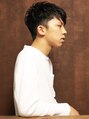 前髪を長めに残したツーブロックショートスタイルです。後ろは繋がる様に、サイドはツーブロックになる様に刈り上げます。前髪が重たい印象にならない様に毛量調節し、スタイリングしやすくしています。