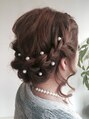 お出出かけやパーティ☆結婚式の二次会などのカジュアルなセットにおススメのパールを使ったアレンジです♪
