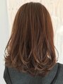 前下がりのボブですが前髪を短くし毛先と表面を巻いてやわらかく優しい雰囲気になるスタイルです。冬に近づき洋服が落ち着いた印象になるのでヘアスタイルをふんわりさせることで全体のバランスが取れます。