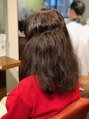 縮毛とカラーを繰り返していて、髪がかなりハイダメージを受けていたのを、根元から中間まで縮毛をかけ、毛先にはデジタルパーマで柔らかさを出してデザインしました。