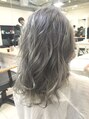 ベースの明るさははブリーチを2回してあります!カラーはスモーキーアッシュグレイをオンカラーしました☆派手好きな方におすすめのカラーです^ ^