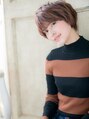 グラデーションカットのアシンメトリーなショートボブ。表面に軽くレイヤーを入れて、スライドカットで重軽な質感を作ります。ワンカールの重なりでふんわり仕上げ、大人っぽいクールさの中にフェミニンさも隠し味に。