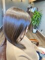 ハンドブローだけでもまとまるようにカット。重くなりすぎないように表面と顔まわりにレイヤーを入れました。カラーはアッシュ系のイルミナカラーでダメージレス&透明感を出しました。さらにイルミナ専用のトリートメントでツヤをプラス
