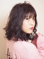 伸ばしかけでも可愛いカジュアルウェーブにスタイリングしたミディアムスタイルです。カラーはパープルを濃いめに入れてツヤ感を出してヘルシーキュートに!