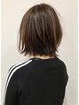 鎖骨したの重軽セミロングスタイル。カラーはマットグレージュ。ブルージュとはまた違った緑っぽさを感じるグレージュ系の色。