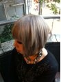 これぞプラチナシルバーと言わんばかりの発色です。ブリーチは2回しています。トリートメントで髪の毛を補修して艶が出るようにしています。