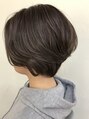 アッシュ系カラーのショート。顔周りが少し長めのスタイルなので、ショートをあまりしたことが無い方にもオススメです♪ハイライトを全体に入れることによって、動きと柔らかさをプラス。
