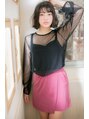 ベースは肩より上のワンレングスボブ。ランダムに巻いたカールで無造作のキメ過ぎないスタイルに!動きを出すことで、重くなりやすいボブも軽めの印象に。前髪も薄めに作り透け感を出して、軽さを出してます。