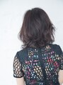 長めバングのレイヤーミディアムスタイル。毛先を外ハネにしたあと、レイヤー部分をふんわり巻いて動きをプラス。