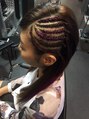 片サイドにパープルのエクステを混ぜたコーンロウスタイルです!デザインも少しだけ変わった感じに個性を出しています!全体もエクステでロングに☆