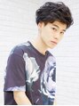 男らしく前髪をしっかりあげたスタイル。直毛ならパーマをかけてくせ毛風にすると、良い感じのゆるさがでます。