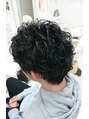ツーブロック前下がりのセンターパートにスパイラルパーマをMIX。パートを変えたり、ドライもウェットも両方楽しめます!