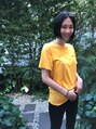 あご下のやや前下がりで仕上げたパッツンボブ。乾かすだけできまるようにカットラインを決めています。飾らないストリートスタイル。