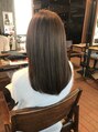 カラーリングによるダメージを軽減し、ツヤ感を重視したミディアムスタイルです☆カットラインは重めに設定し、毛量調整は細かい毛が出ないようにスライドカットを施しています!