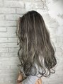 全体に細かめのハイライト。暗めのグレージュでよりコントラストのある立体感になるように計算されたハイライトです!