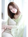大人かわいいミルクティーカラーのミディアム。メルトカラーやイノセントカラーとの相性も◎斜めバングでうぶバングを演出。短過ぎないシースルーが大人っぽいです。伸ばしかけの方はエアウェーブやデジタルパーマがオススメです。パーマで小顔に変身♪