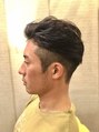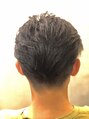 サイドとバックはツーブロックに刈り上げてルーズな7:3パートでバックにかき分け仕上げに水性ポマードでツヤ感をプラス。