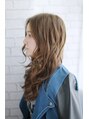 大人ロングのミックスカールスタイル。弾力のあるウェーブ感とロングバングが、かっこいい雰囲気を感じさせるヘアースタイル。