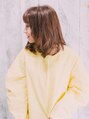 毛先にワンカールを入れ、ふんわり柔らかいスタイルになります!暖色系の明るさがあるカラーにすることにより、ツヤを出し、ワントーンアップの肌見せ効果もあります!重軽スタイルに、顔周りに短い髪を作り動きを☆