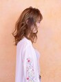 Aラインで甘い可愛らしさをキープしつつ、頭頂部から大きく波打つウェーブでセクシーさもプラスしたスタイル。表面に動きを出すよう軽さを出したカットで、あかぬけた雰囲気に。