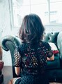 長めバングのレイヤーミディアムスタイル。毛先を外ハネにしたあと、レイヤー部分をふんわり巻いて動きをプラス。