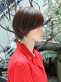 シンプルなショートスタイルですが顔まわりを前下がりにカットすることでコンパクトにまとまり顔もきゅっと小さく見えます。前髪に隙間を作ってしなやかさを出します。前髪の長さなどご相談ください。