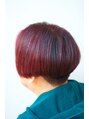 大胆にハイライトを入れたショートスタイル!斜めにブリーチでハイライトを入れた後に、全体をワインレッドでカラーしました♪後ろに流せばハイライトがわかりやすくなり、前に下ろせば自然な仕上がりになるので、気分でスタイルを変えられますよ☆