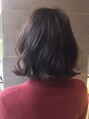 全体は重めに肩ラインでカット。前髪はリップラインでカットして、センターで分けてちょっぴりフェミニンに。カラーは暗いけど、アッシュグレーにして透明感の出るようにしました。ゆるく、毛先は外ハネにして、大人かわいく。