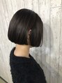 超人気ボブスタイル。顎ラインで揃えた切りっぱなしボブ。カラーはアッシュ系のダークカラーでツヤと落ち着きを。ブロー仕上げですが、ドライのみでもしっかり収まりとツヤを両立できる簡単ヘア。