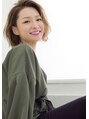 カット 切りっぱなし風のボブに表面が動くようにレイヤーを入れています。あまり梳かないで重さをキープしています。カラー ブラウンベージュでまろやかな優しい色味にしています。