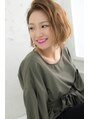 カット 切りっぱなし風のボブに表面が動くようにレイヤーを入れています。あまり梳かないで重さをキープしています。カラー ブラウンベージュでまろやかな優しい色味にしています。
