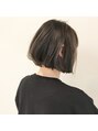 ハイライトの入ったパッツンボブスタイル。ダークグレージュでツヤ感と透明感を出しました。