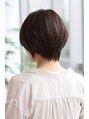 前髪が長めの大人なショートスタイルです。ボリュームを出すのに、後ろはくびれるようなカットにしてあります。ペタっとなりやすい方は、パーマをかけるのもオススメです。