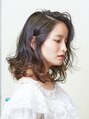 伸ばしかけでも扱いやすいパーマスタイルで、ドライでもウェットにしてからスタイリングしても、やりやすいようにしています。全体に軽いレイヤーを入れて重たくなりすぎないようにしています。毛先のみ少し明るいカラーリングで更に軽やかさを出しています。