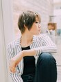 短めなメンズライクなショートも曲線を混ぜたスタイリングでジェンダーレスにカッコよく綺麗に仕上がります♪カラーはくすみカラーでショートレングスと相性のよいハイライトを入れて外国人風カラーに。かっこいい女性のためのショートヘアーです。