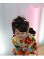毛先に動きがある柔らかいスタイルにしました。飾りをとればそのままワンピースを着ても大丈夫なように仕上げました。