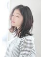 クセや動きなど本来持っている素材をカットで引き出した、重めの柔らかいスタイル。髪が主張しすぎないように、ナチュラルなダークブラウンを合わせ、テクスチャーも素髪っぽくしあげたのがポイント。