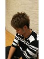 11レベルのアルカリカラー剤でグレージュに染めたトップ部分とサイドとバングをアシメにしたバックに向かって刈上げ部分がグラデーションになってるツーブロスタイルです。