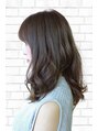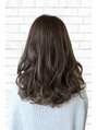 セミロングのウェーブスタイルです。中間から毛先を32mmのアイロンでミックス巻きにして動きをつけ、ラフなパーマのような動きを再現。カラーはくすんだアッシュ系が特徴です。