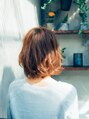 少し重ためのボブは伸ばしかけのスタイルにもぴったり☆ 肩について跳ねてしまうなどの悩み解消にも◎ 前髪は下ろしながらも、毛先を流して大人可愛いスタイルに!! やわらかなベージュカラーが女性らしさを引き立ててくれます♪