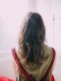 センターパートの長めのバングが印象的なセミディスタイル。全体を外ハネに巻いた後に表面をランダムに巻いてラフでルーズなスタイリングバングにも外ハネになるようにウェーブをつけてオシャレ感アップ♪