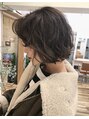 アゴラインのボブに無造作カールでスタイリング★カラーはハイライトを入れたグレージュカラーです!