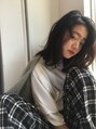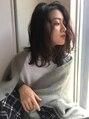 鎖骨下のロングボブ。柔らかい質感のニュアンスパーマで大きめにふんわりと。重さを残しつつ毛束感が出やすいように間引いてカット。カラーはナチュラルなダークアッシュでほんのりと外国人の地毛のような質感に。