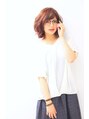 ストレートのボブに飽きてしまった方にはこんなボブスタイルは如何でしょうか?カラーも秋に向けてピンク系で艶感と柔らかさを演出しています。パーマはエアウェーブがオススメです。