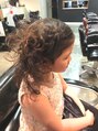 可愛らしいお嬢様のパーティヘアーです。回りを編み込んでからの右サイドのサイドアップです。バランス良く、どこにボリューム・ポイントをおくのかがミソです!