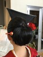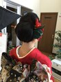 和装ヘア純和風にまとめてみました。可愛いお花の髪飾りと合わせてモダンな感じに仕上がりました