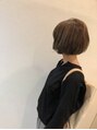 重ためやや前下がりボブスタイル少しトレンドのモード感がでるようにラインをだしてカットカラーは全体の毛先にランダムにブリーチ あまり奇抜になりすがないように毛先5分の1までその後バイオレットとブルーアッシュを混ぜて塗布
